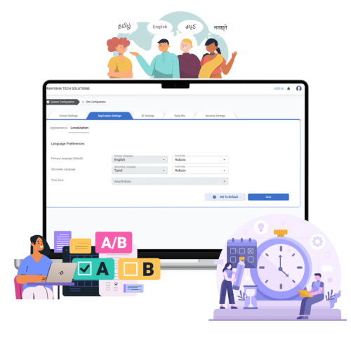 The Regional Language & Appearance Customization feature in BeeVyuha™ allows administrators to personalize the application's language settings and visual elements. This ensures a more accessible and user-friendly experience by enabling institutions to localize the interface and align the system’s branding with their identity.