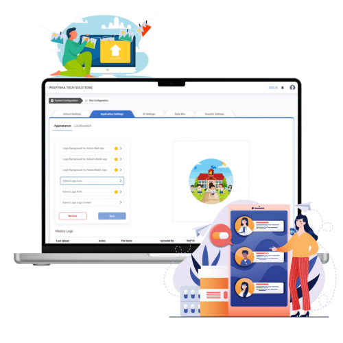 Customize background images for admin, school staff, and parent users to enhance user experience.