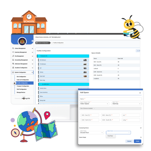 Facility Planning in BeeVyuha™ is a powerful tool designed to strategically allocate and manage school spaces before implementing scanner locations within the campus. This feature ensures optimal utilization of facilities by categorizing spaces into Indoor, Outdoor, and Transitional areas while defining their purpose, optimizing layouts, and ensuring compliance with accessibility regulations.