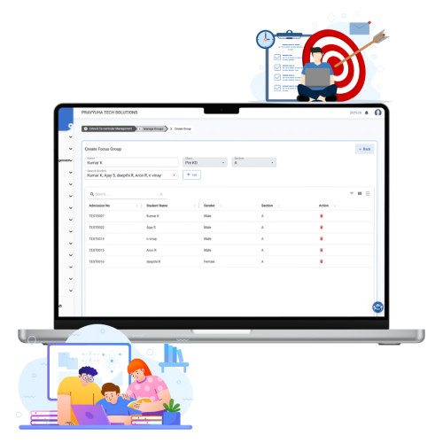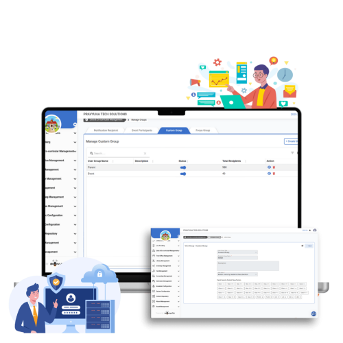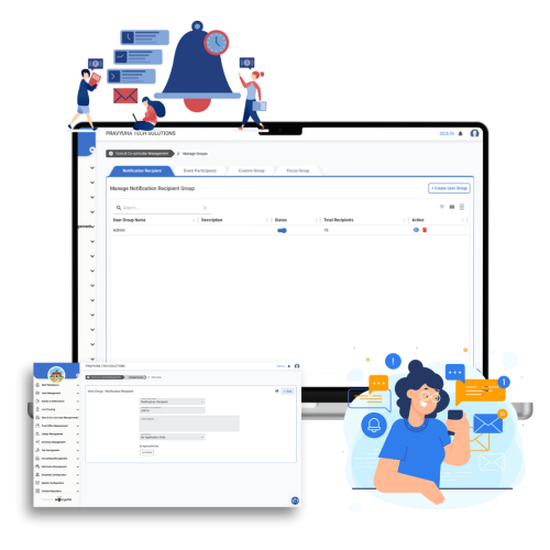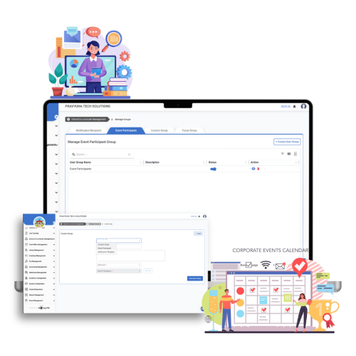 User Group Management in BeeVyuha™ enables administrators to efficiently categorize and manage predefined groups for notifications, event coordination, academic tracking, and general administration. This system enhances structured communication, user engagement, and operational efficiency by ensuring predefined user segmentation across various functionalities.
